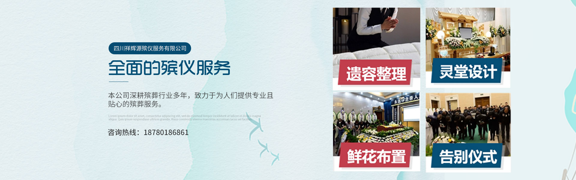 四川祥辉源殡仪服务有限公司,坐落于四川省成都市锦江区。本公司深耕殡葬行业多年,致力于为人们提供专 业且贴心的殡葬服务。